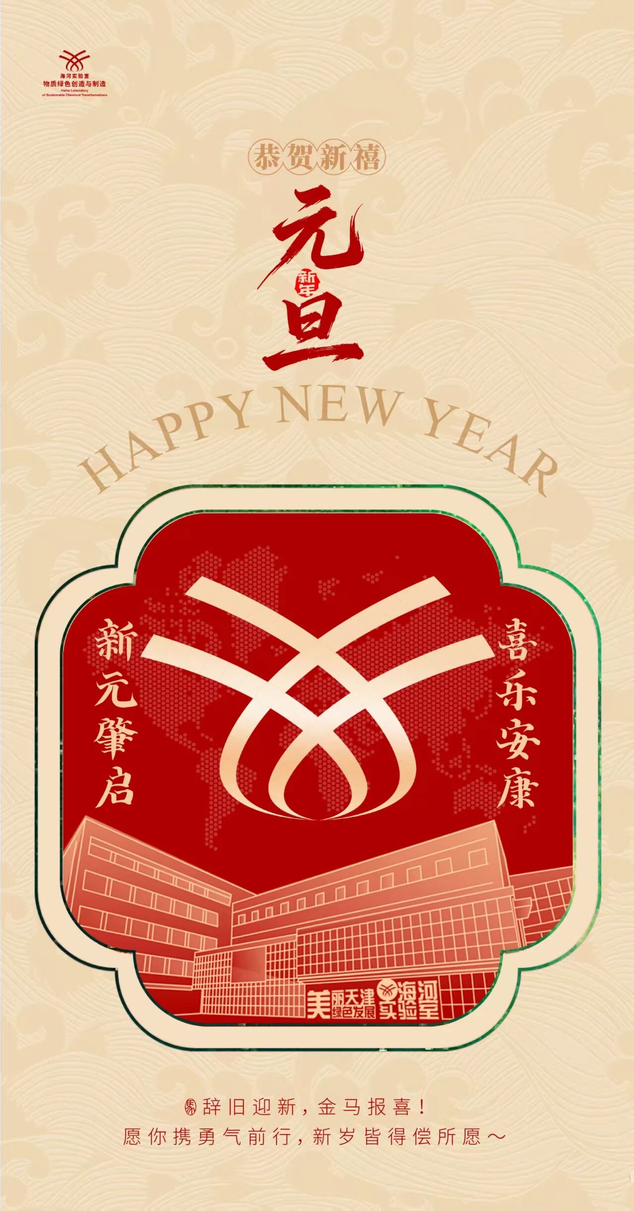 时光流转,华章日新。值此2026年元旦来临之际,物质绿色创造与制造海河实验室谨向全体科研人员、合作单位同仁,以及长期以来关心支持实验室发展的 各级领导、社会各界朋友,致以最诚挚的新年祝福和最衷心的感谢 !